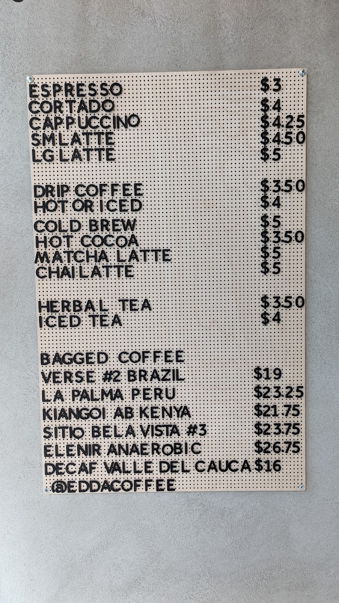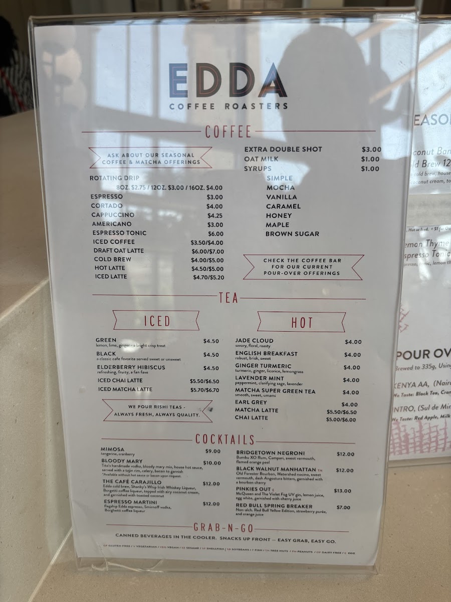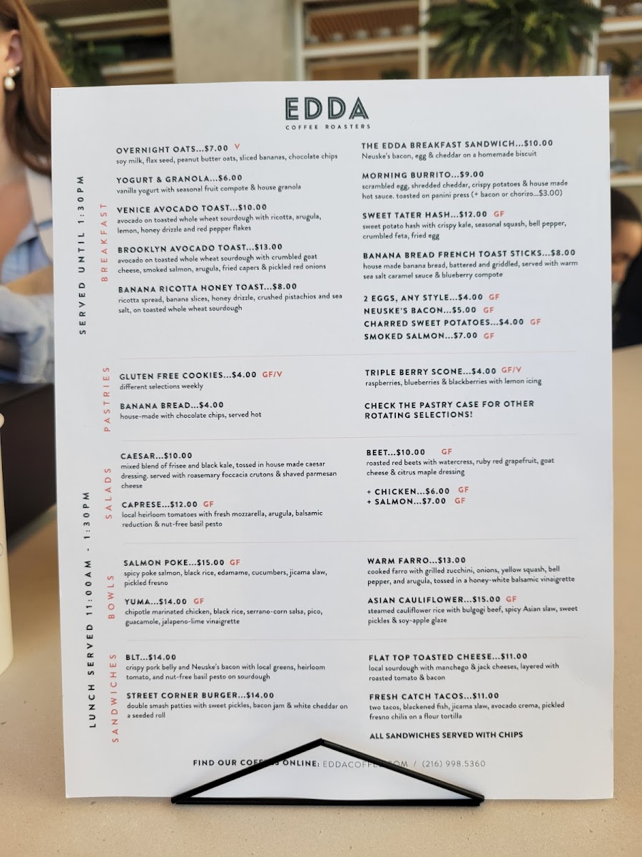 If you're in the mood for a coffee experience that’s crafted with care and passion, the Edda Coffee Roasters Menu is just what you're looking for. Nestled in the heart of Cleveland at 2011 W 25th St, this place brings you a curated selection of expertly roasted coffees, each one showcasing distinct flavors from around the globe. Whether you're in the mood for a smooth, rich espresso or a lighter, floral pour-over, Edda’s menu offers something to satisfy every coffee lover’s cravings. Alongside their coffee, you’ll find an assortment of freshly baked pastries, perfect for pairing with your favorite brew. The atmosphere is warm and welcoming, making it the ideal spot to sit back, sip, and enjoy the artistry that goes into each cup.
